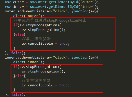 非主流浏览器通过:事件对象的cancelBubble = true阻止