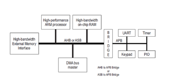 下图展示了一个典型的基于AMBA的微控制器架构。