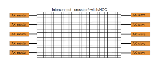 下图说明了如何使用AXI互连来构建各种IP通信的的SOC。与以前的AHB/ASB总线相比,AXI互连有助于提高连接数量。