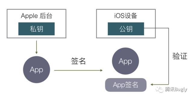 要实现这个需求很简单,最直接的方式,苹果官方生成一对公私钥,在 iOS 里内置一个公钥,私钥由苹果后台保存,我们传 App 上 AppStore 时,苹果后台用私钥对 APP 数据进行签名,iOS 系统下载这个 APP 后,用公钥验证这个签名,若签名正确,这个 APP 肯定是由苹果后台认证的,并且没有被修改过,也就达到了苹果的需求:保证安装的每一个 APP 都是经过苹果官方允许的。
