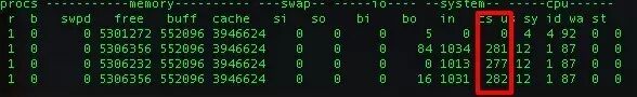 还可以通过vmstat,通过观察内核状态的上下文切换(cs)次数,来判断是否是上下文切换造成的cpu繁忙。