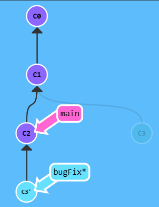 现在 bugFix 分支上的工作在 main 的最顶端,同时我们也得到了一个更线性的提交序列。