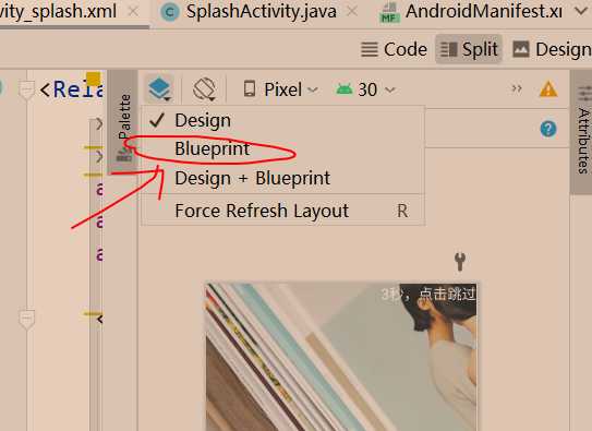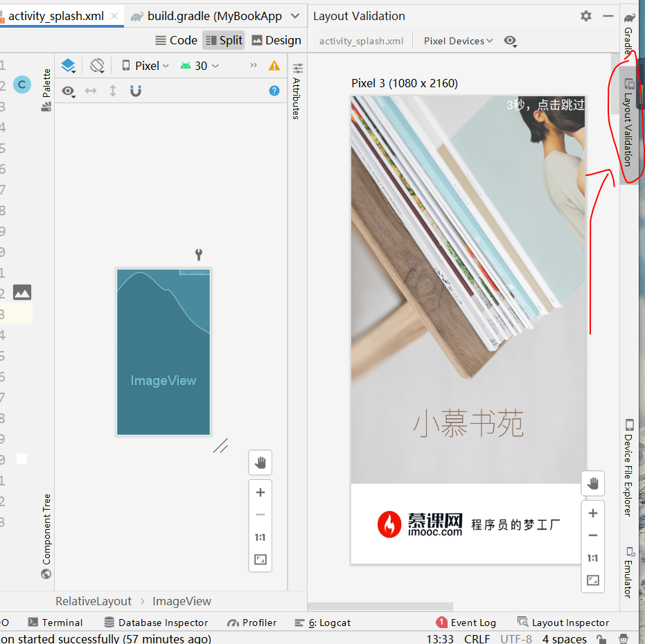 <RelativeLayout xmlns:android="http://schemas.android.com/apk/res/android" xmlns:app="http://schemas.android.com/apk/res-auto" xmlns:tools="http://schemas.android.com/tools" android:id="@+id/activity_splash" android:layout_width="match_parent" android:layout_height="match_parent" > <ImageView android:layout_width="match_parent" android:layout_height="match_parent" android:src="@drawable/splash" android:scaleType="fitXY"/> <TextView android:id="@+id/time_text_view" android:layout_width="wrap_content" android:layout_height="wrap_content" android:textSize="20sp" android:text="3秒,点击跳过" android:textColor="#ffffff" android:layout_alignParentRight="true" /> </RelativeLayout>4.已解决