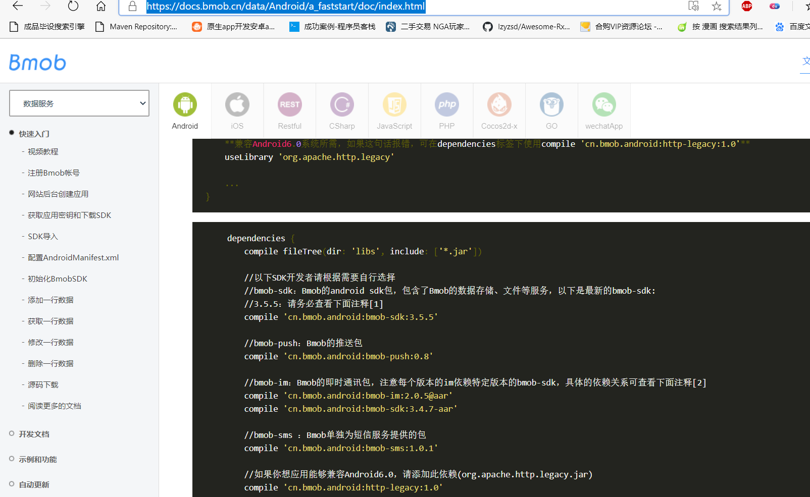 Bmob 快速入门文档 (看着新的,依赖用implement ,不是用compile)