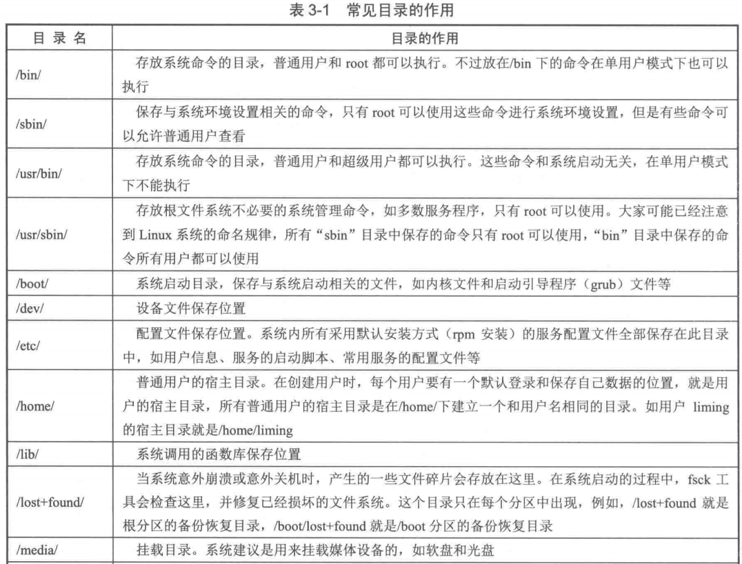 /bin, /sbin, /usr/bin, /usr/sbin: 这是系统预设的执行文件的放置目录,比如 ls 就是在 /bin/ls 目录下的。