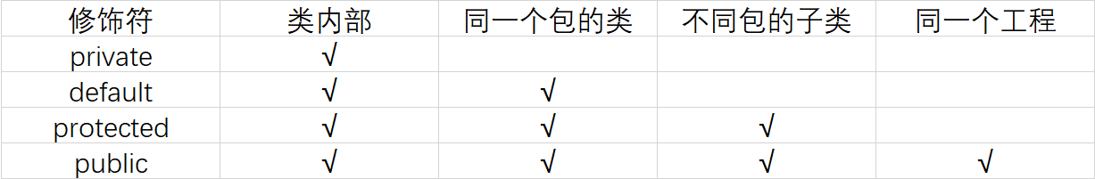 Java中的封装主要采取的是四类修饰符