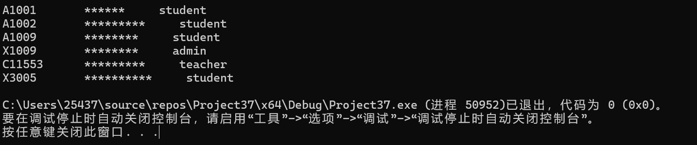 void output(Account x[], int n); // 输出账户数组x中n个账户信息,其中,密码用*替代显示