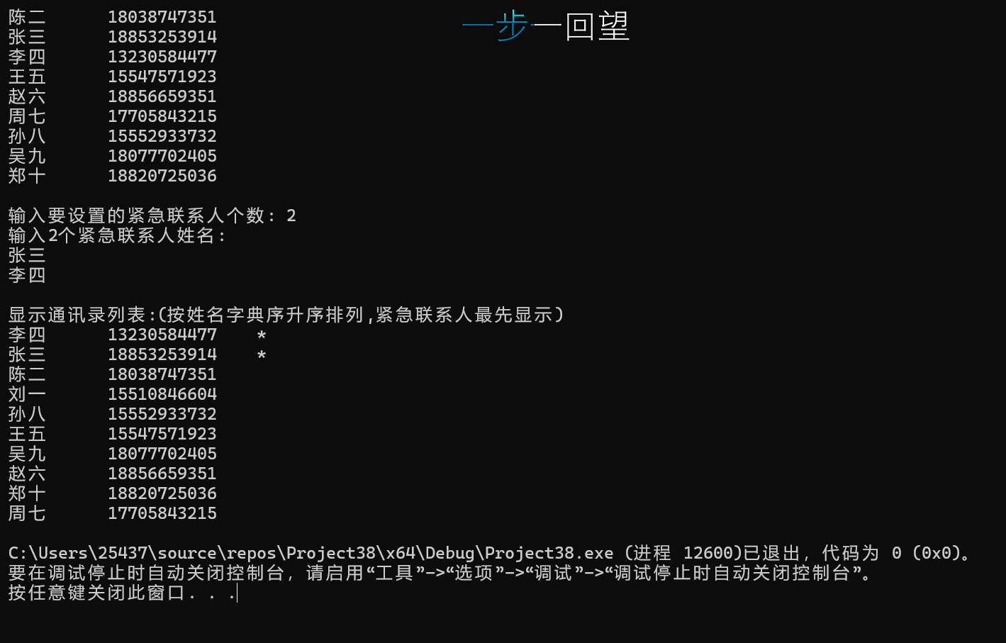 // 按姓名字典序升序显示, 紧急联系人显示在最前面