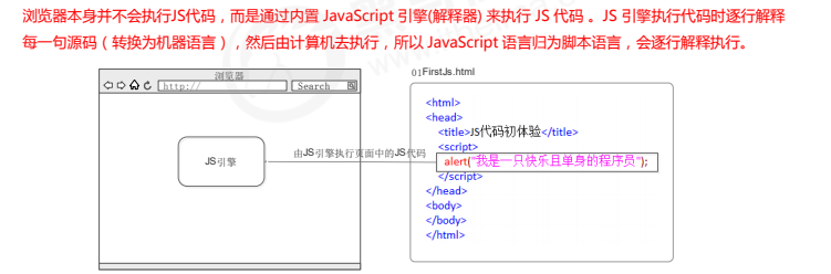 - 脚本语言:不需要编译,允许过程中由js解释器(js引擎)进行解释执行