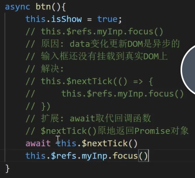 原理:this.$nextTick(函数体)返回的是一个promise对象