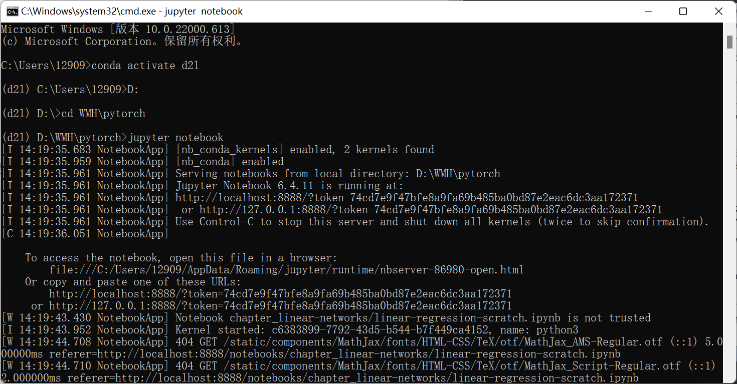 1、激活conda下配置的d2l环境 的环境