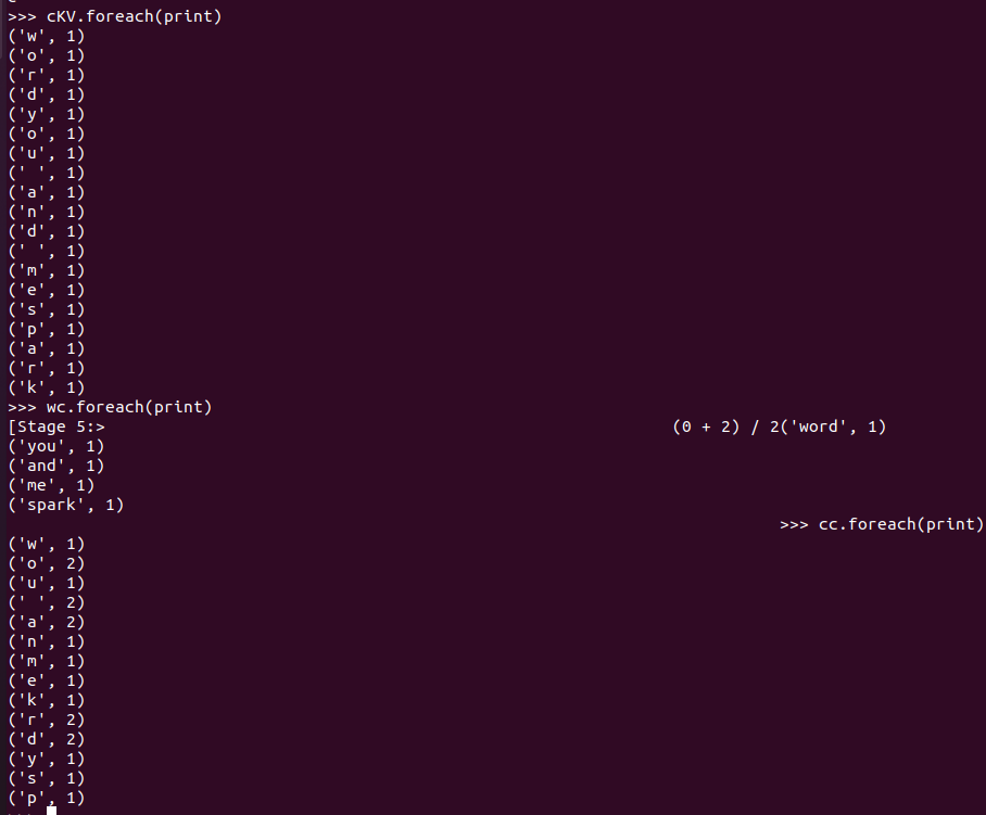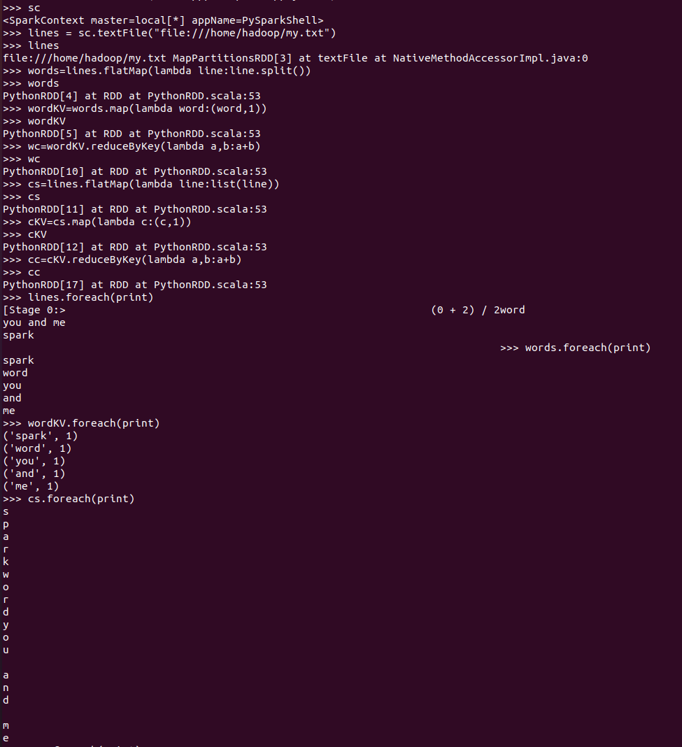3.在PySparkShell尝试以下代码,观察执行结果,理解sc,RDD,DAG。请画出相应的RDD转换关系图。