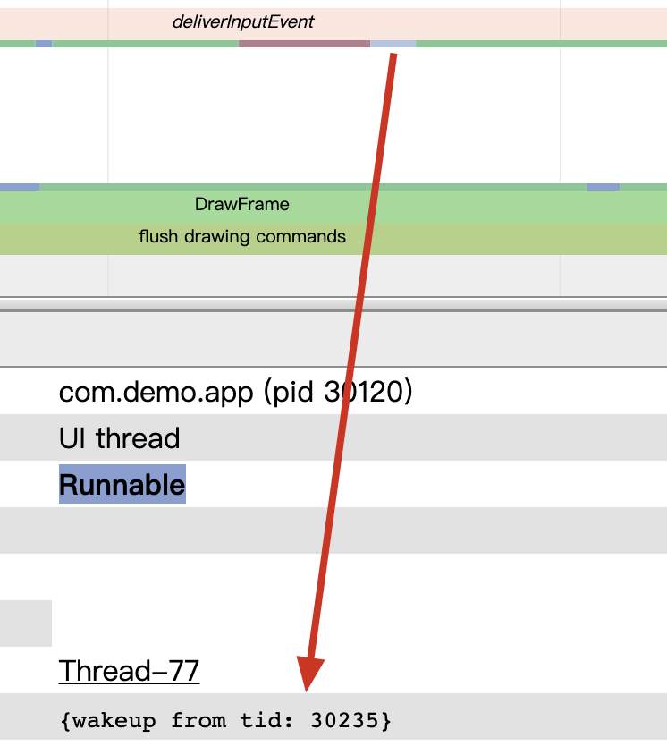 Sleep 最常见的有图 1(UIThread 与 RenderThread 同步)的情况与图 2(Binder 调用)的情况。 Sleep 状态一般是由程序主动等待某个事件的发生而造成的,比如锁等待,因此它有个比较明确的唤醒源。
