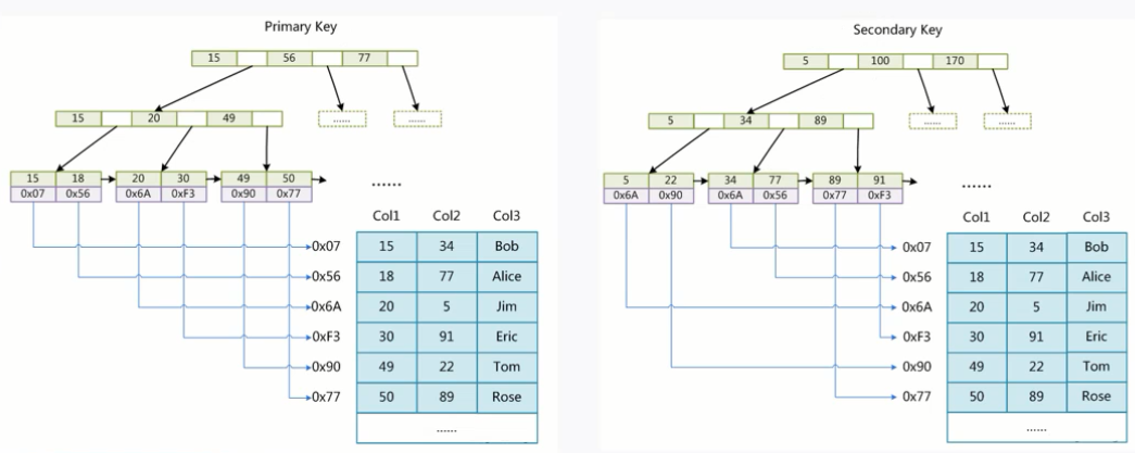 | 缓存 | 缓存索引 | 缓存索引和数据 |