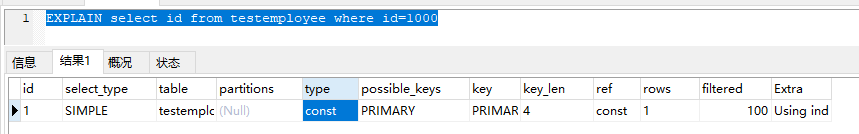 当只需要一条数据的时候,使用limit 1