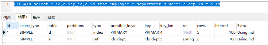 select * from 表1 inner join 表2 on 表1.id = 表2.dep_id