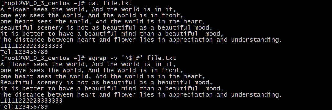 命令 egrep 与参数 -v 的及字符集的使用举例