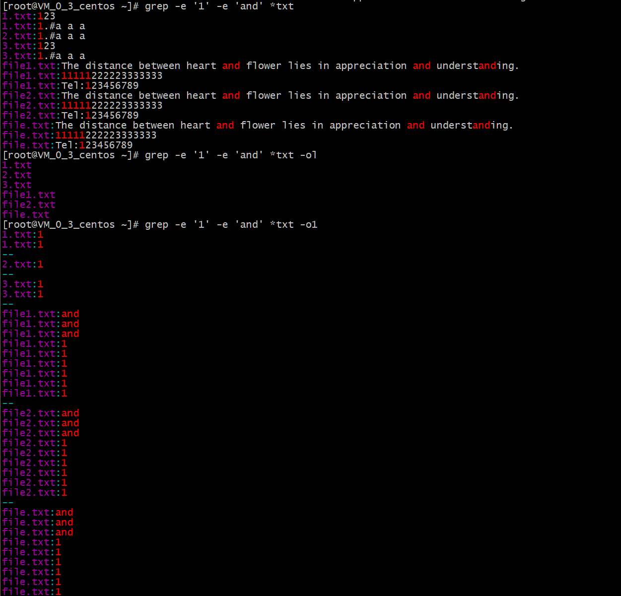 注意:如果匹配结果有多个,会用 " -- " 作为各匹配结果之间的分隔符,如果多个结果显示的行数相连或重叠则不会显示 " -- " 分隔符