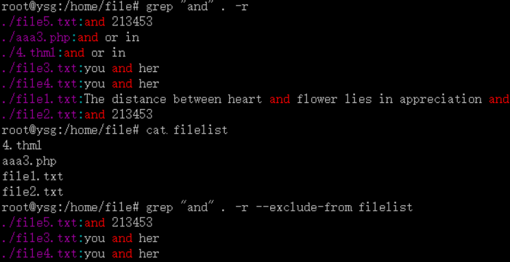 2.--exclude-from 在搜索结果中排除filelist文件列表里的文件