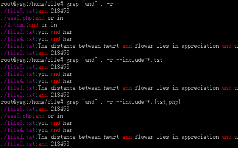 3.--include 只在所指定的目录文件中递归搜索字符 " and "