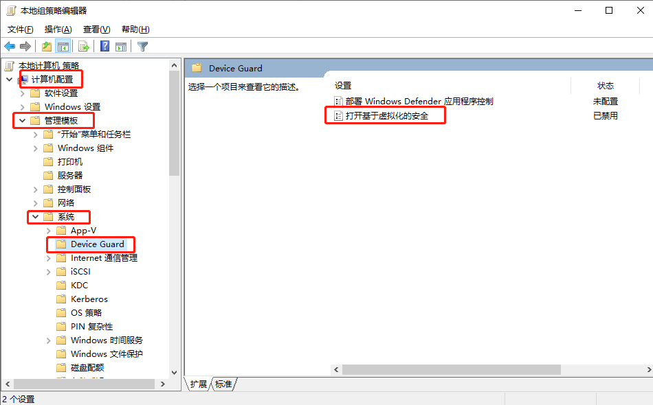 本地计算机策略 --> 计算机配置 --> 管理模板>系统 --> Device Guard