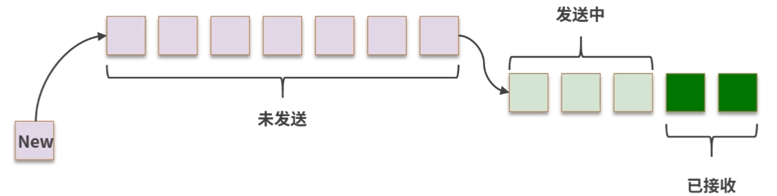 - 浅绿色代表发送了,但是没有收到 ACK 的段