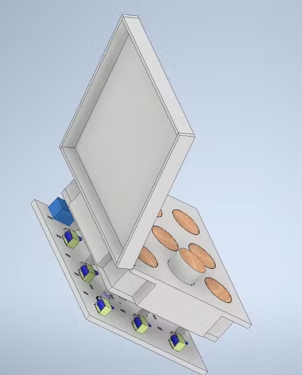 现在我们可以把底板与9个气缸在组装和关闭一切的顶部。有了这一步,游戏的机制部分就完成了,可以进行测试了。