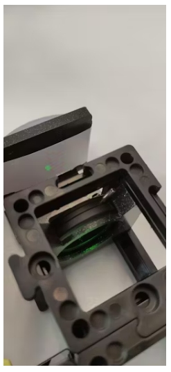 利用顶底板和底底板,将针孔置于连接针孔和运动镜的分束器后成一条直线。将屏幕置于针孔后,打开激光器,如图所示将光束对准针孔的中心。关掉激光。