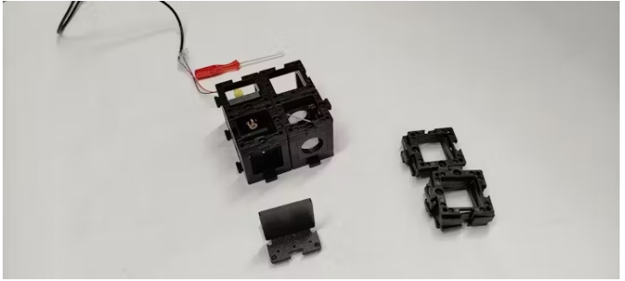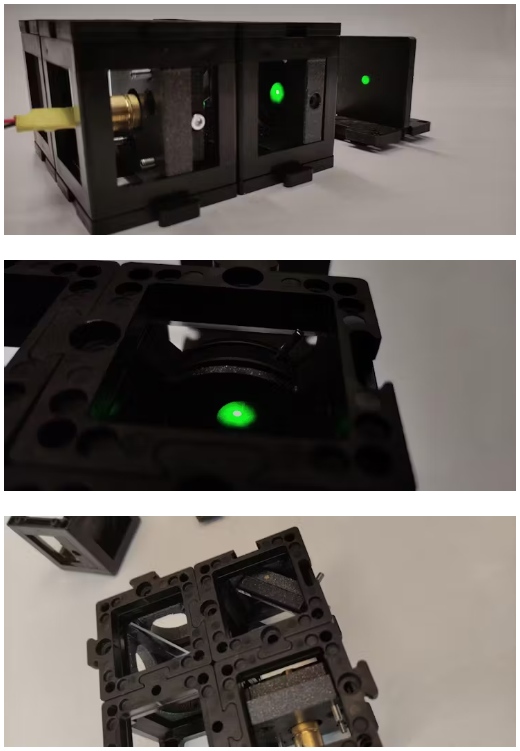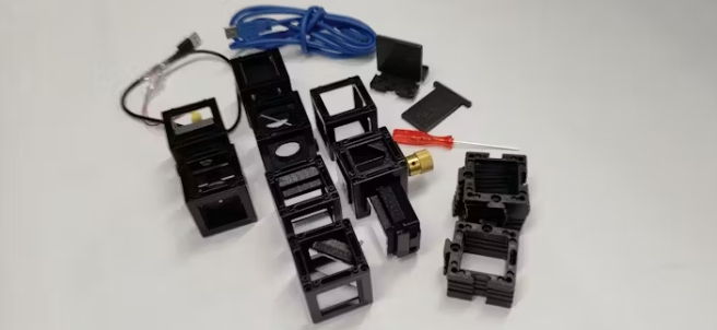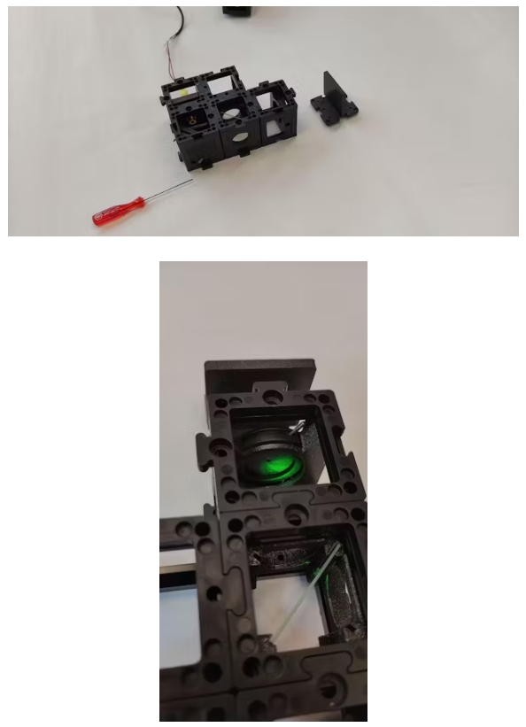 我们破例跳过打印零件的步骤,购买即用型OpenUC2发现干涉仪套件并立即开始。这包括立方体、镜子支架和分束器支架,最重要的是,520纳米激光笔。