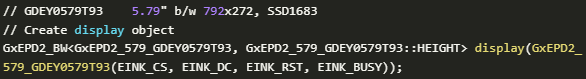 GxEPD2_579_GDEY0579T93:类标识符,充当此显示模型的特定驱动程序。
