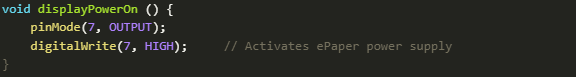 该电路的控制引脚是GPIO7,因此在尝试访问显示器之前,第一步是通过将该引脚设置为HIGH来打开电源。