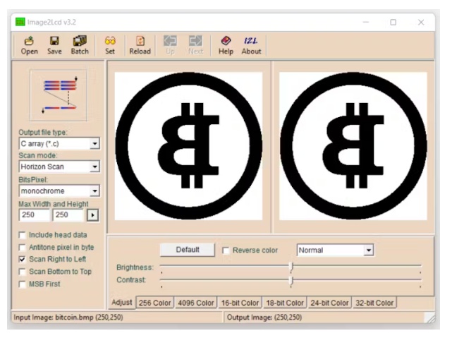 您需要采取的唯一预防措施是在将图像转换为image2lcd之前对其进行水平镜像。