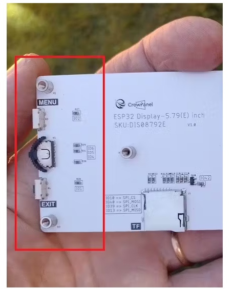 所有CrowPanel模型都在侧面包含一组按钮以支持用户交互。它们由两个按钮和一个连接到ESP32-S3的旋转开关组成,ESP32-S3的状态可以直接从程序中读取。