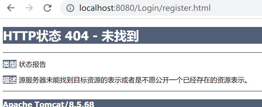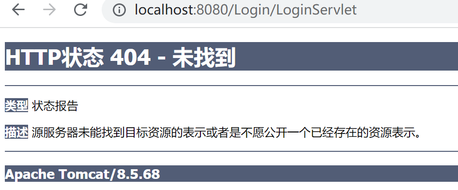 改成本地Tomcat8.5.68后可以启动,但是无法找到项目的资源,无论是超链接还是servlet都无法跳转: