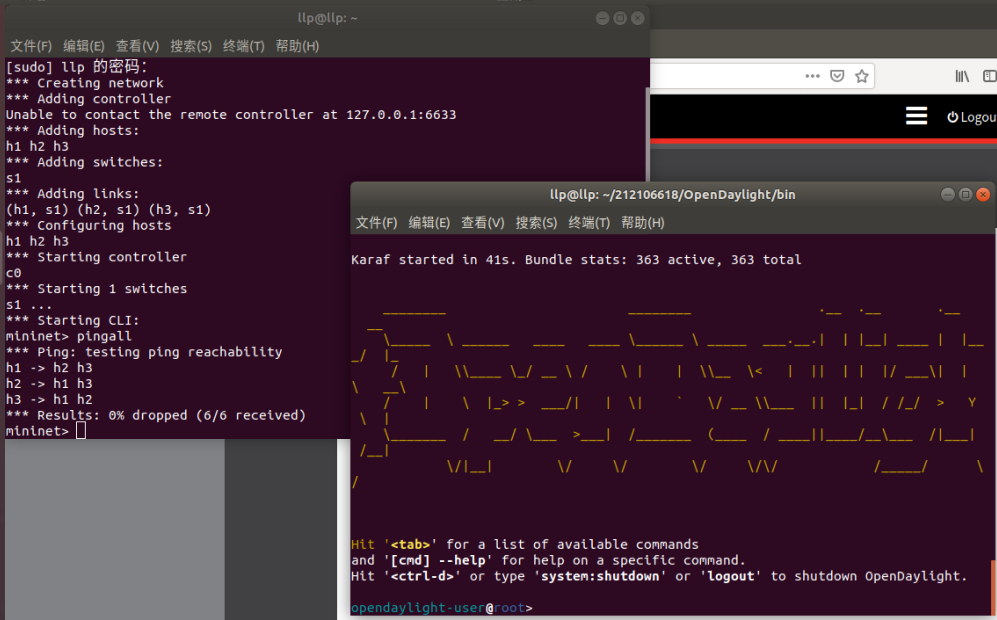 (1) 利用Mininet平台搭建下图所示网络拓扑,并连接OpenDaylight;