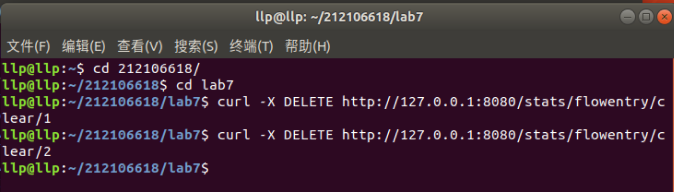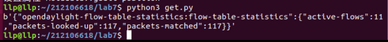 - 通过本次实验,学习了使用OpenDaylight REST API和Ryu REST API实现调用网络功能,除此之外还进一步学习了python的request库。本次实验感觉比较难,综合了前几次的实验。在实验中要记得先把流表清空。还有curl的下载,按照百度的方法利用wget来下载,下了好几次都不行,最后用命令行里的提示,利用命令sudo apt install curl才下载成功。删除流表时,需要授权使用sudo curl -X DELETE http://localhost:8080/stats/flowentry/clear/1。