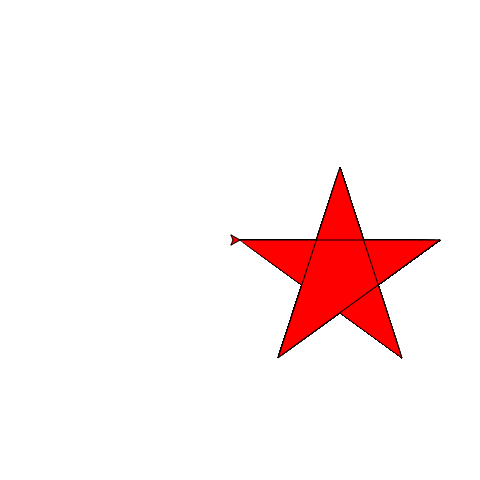 from turtle import * fillcolor("red") begin_fill() while True: forward(200) right(144) if abs(pos()) < 1: break end_fill()
