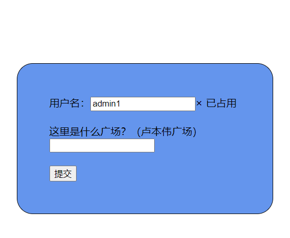 从questions.json中随机抽取一个问题和答案,根据抽取的问题,用户填写答案进行匹配,防止使用机器人注册。例如: