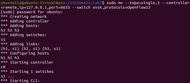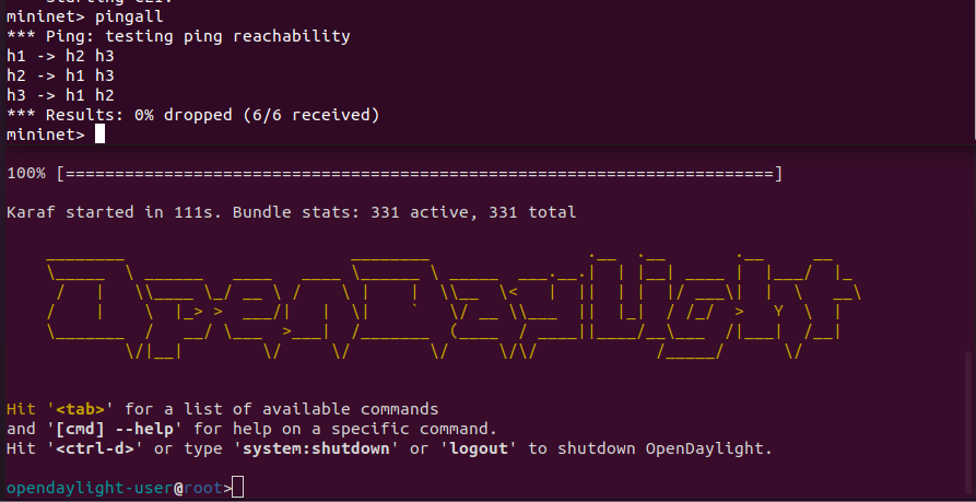 (1) 利用Mininet平台搭建下图所示网络拓扑,并连接OpenDaylight;![]()