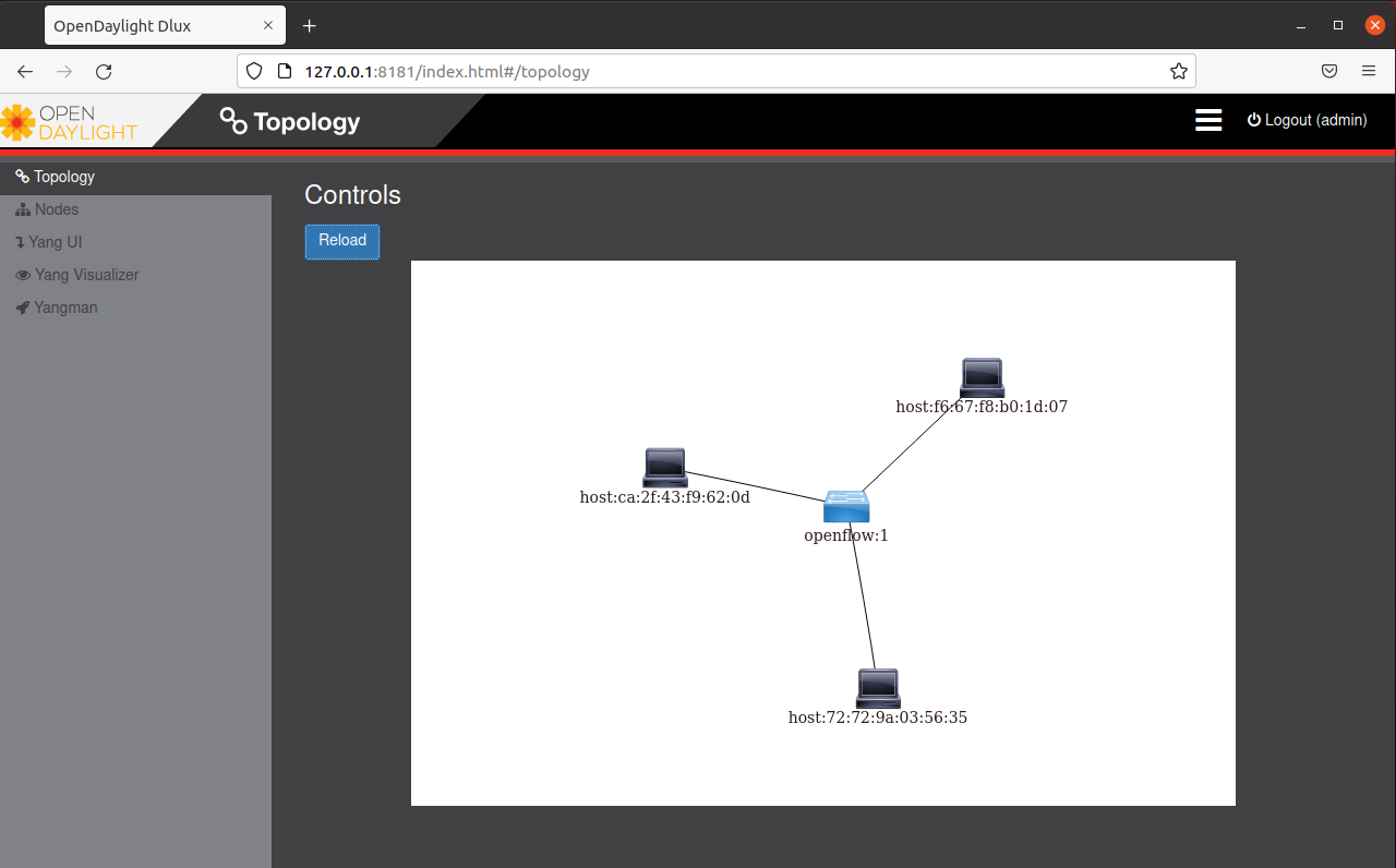 OpenDaylight或Ryu任选其一,编程实现查看前序VLAN实验拓扑中所有节点(含交换机、主机)的名称,以及显示每台交换机的所有流表项![]()