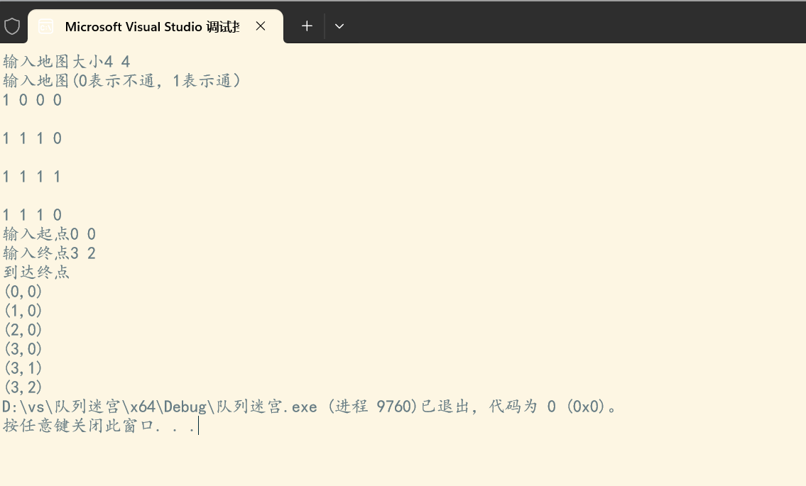 1.设定迷宫路径,输入起点和终点