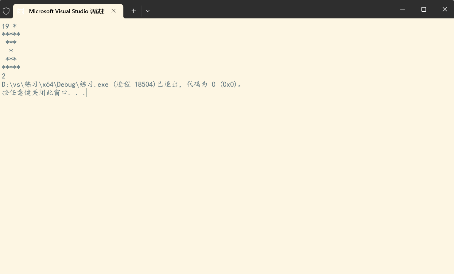 这段代码的主要功能是打印一个由字符组成对称的沙漏图案,并计算输出剩余未使用的字符数量。程序首先要接收两个输入值:一个int型a和一个char型m。a来代表总共可用的字符数量,m用于构成对称沙漏的字符。 由于要确保程序中m要对称输出且还不能超过字符总数,所以可以通过循环相加来找到沙漏输出的最大个数,每层字符数呈递增关系,直至找到最大可能的值。接着,我分成两部分来打印沙漏图形,要先打印沙漏的上半部分,包括最中间的一行;然后打印下半部分(去除只打印1个字符那行)。这个打印过程需要通过双重循环来实现,还要通过k和p(内层循环总数)来调整空格数和字符m的数量和换行符来形成沙漏的形状。每成功打印一个字符m,就会将计数器sum增加1,用于跟踪已使用的字符数量。最后,程序计算并输出剩余未使用的字符数。
