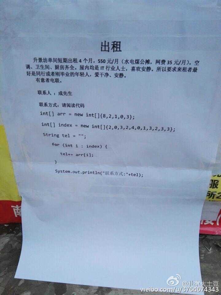 一时间网上一片求救声,急问这个怎么破。其实这段代码很简单,index数组就是arr数组的下标,index[0]=2 对应 arr[2]=1,index[1]=0 对应 arr[0]=8,index[2]=3 对应 arr[3]=0,以此类推…… 很容易得到电话号码是18013820100。