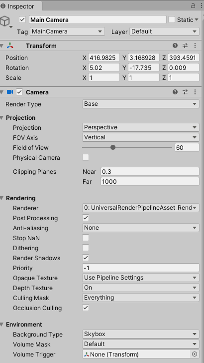 camera的属性面板会改变,成这样,把Post Processing勾上