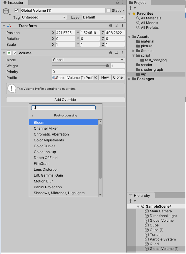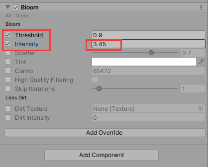 查看volume对象的属性,选择一个内置的后处理Bloom看看效果