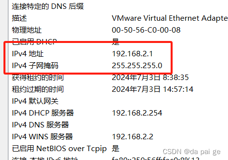 1》 查询VMnet8的IP地址 (用第三个网络号来区分)