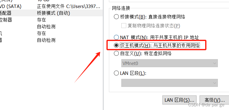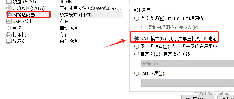 缺点:桥接模式的虚拟机会占用真实机网段的IP地址(IP地址有限,地址不够用)