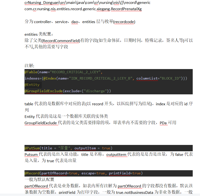 配了护理记录单,与护理评估单不同,要在controller、service、dao、entities、以及recordcode上添加东西,主要是entities要添加对应的字段,