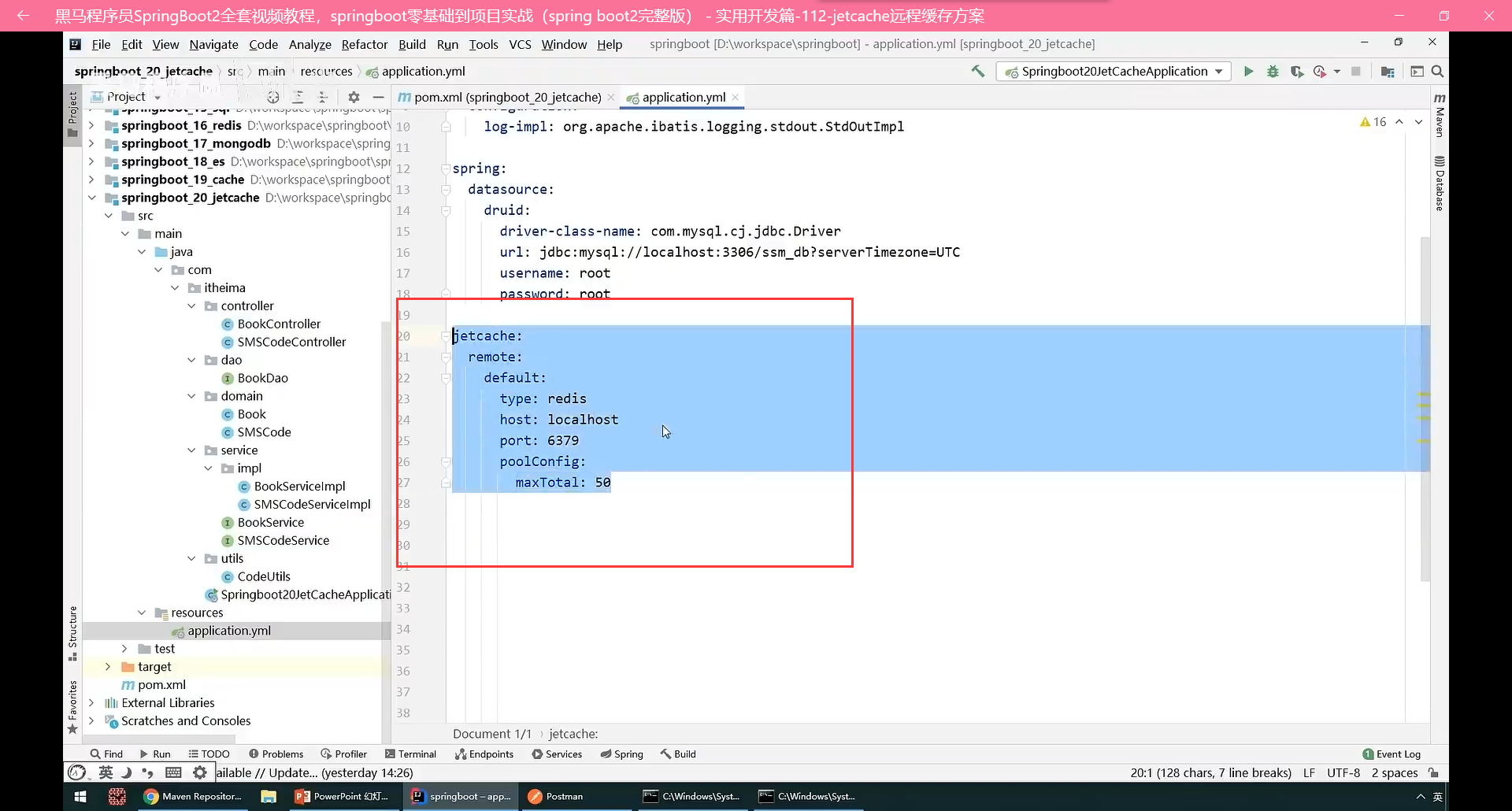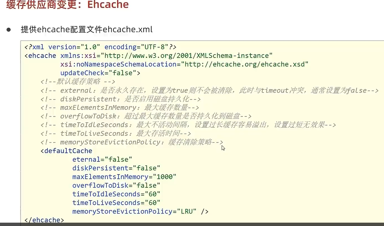 导坐标,yml文件换cache类型位ehcache,加入ehcache.xml文件,一开始有默认的缓存供应商,还要加多一段案例中smscode中的,在那一串中加个name:“smscode”就可以启动成功了