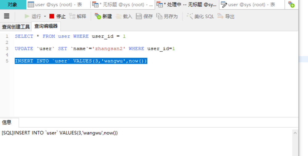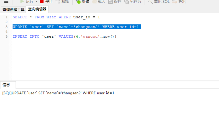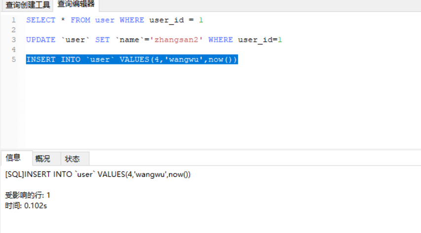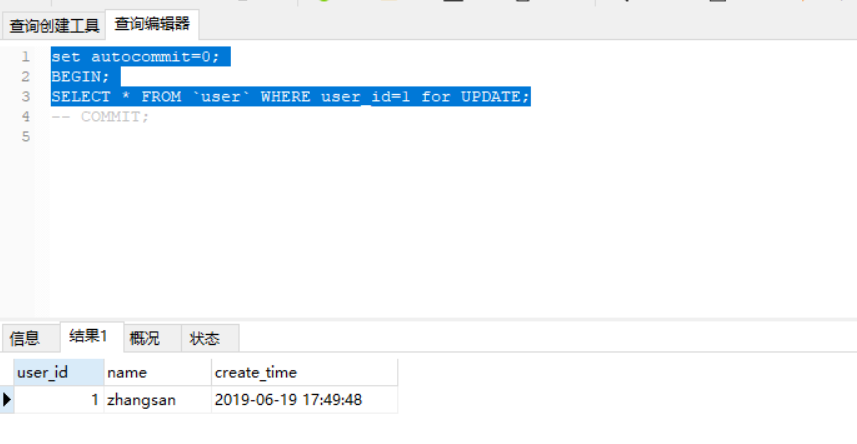 SELECT * FROM `user` WHERE `name`='zhangsan' for UPDATE;
